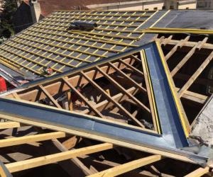 Nous exécutons les travaux pour tous types de toitures : gouttières, chéneaux, chiens assis ou planches de rives. Nos équipes maîtrisent toutes les techniques de zinguerie : habillage de cheminée, réalisation de gouttières zinc, cuivre, etc.Nous mettons à votre disposition notre savoir-faire pour vous apporter un travail de zinguerie de qualité et exécuté dans les règles de l'art.